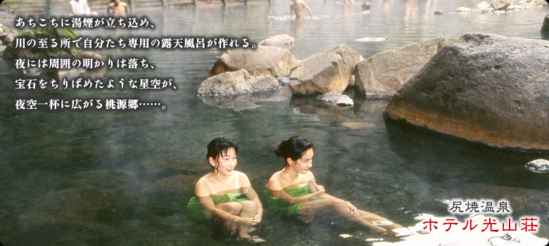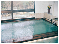 ■左の写真は殿方の湯です。婦人の湯は総ヒノキ造りです。 ■泉質/含土類石膏泉(アルカリ性弱塩水) ■効能/神経症・リウマチ・婦人病・胃腸病・外傷・痔、等
